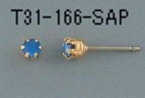T31-166-SAP 【アメリカ製】誕生石サファイヤ付チタンポスト6本爪 入数:10個 素材:真鍮&オーストリア産ラインストーン メッキ:なし