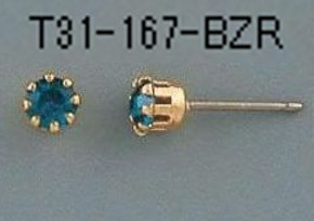 T31-167-BZR 【アメリカ製】誕生石ブルージルコン付チタンポスト8本爪 入数:10個 素材:真鍮&オーストリア産ラインストーン メッキ:なし