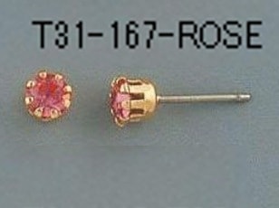 T31-167-ROSE 【アメリカ製】誕生石 ローズ付チタンポスト 8本爪 入数:10個 素材:真鍮&オーストリア産ラインストーン メッキ:なし