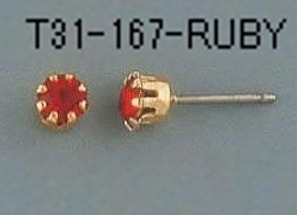 T31-166-RUBY 【アメリカ製】誕生石 ルビー付チタンポスト 6本爪 入数:10個 素材:真鍮&オーストリア産ラインストーン メッキ:なし