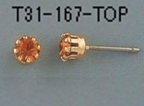 T31-166-TOP 【アメリカ製】誕生石 トパーズ付チタンポスト 6本爪 入数:10個 素材:真鍮&オーストリア産ラインストーン メッキ:なし