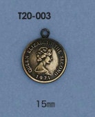 T20-003 【国産】エリザベス コイン 15㎜ 片カン 入数:10個 素材:真鍮 メッキ:なし