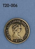 T20-033 【国産】コイン19㎜カンナシ(チャールズ ダイアナ) 入数:10個 素材:真鍮 メッキ:なし